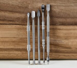 Das Dabbing Zubehör besteht aus 5 doppelendigen, lebensmittelechten Wachswerkzeugen. Dank der praktischen Verpackung eignet es sich auch sehr gut für unterwegs!