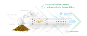Seit 2010 haben wir von Rolls es uns zur Aufgabe gemacht, das Rauchen von „Kräutermischungen“ schadstofffreier und zugleich genussvoller zu gestalten. Nach jahrelanger Entwicklung und dem Einsatz von modernsten Testverfahren, haben wir schließlich unser erstes Produkt, die Rolls® Smart-Filter, auf den Markt gebracht.